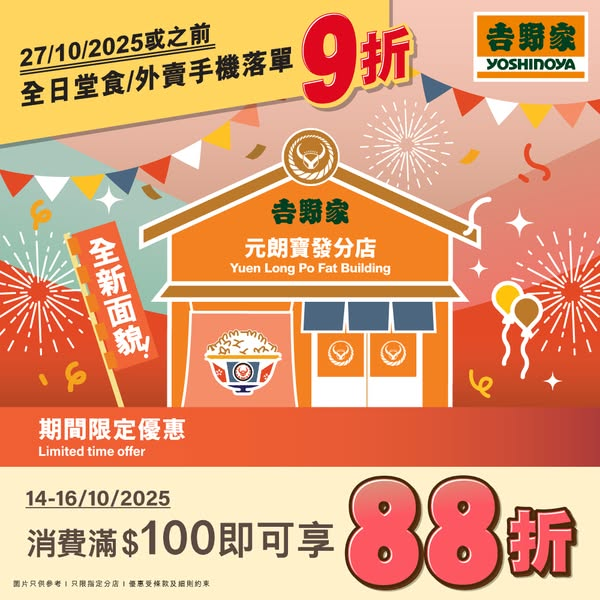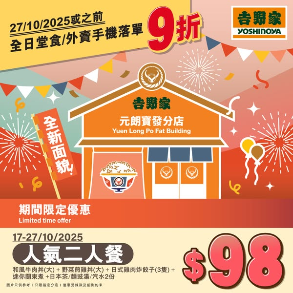 【吉野家元朗寶發分店全新面貌.限定優惠】