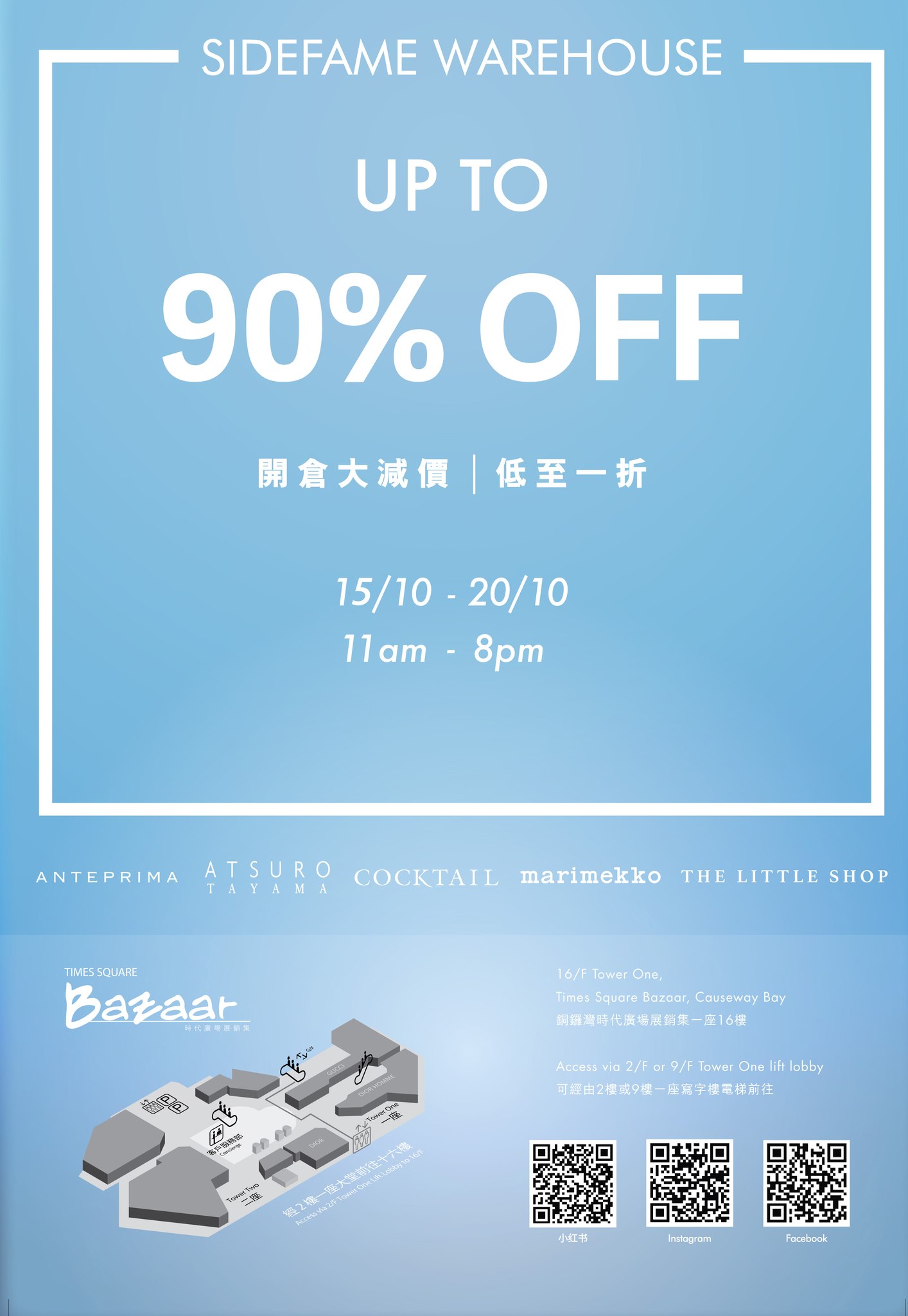 #TimesSquareBazaar#HKTimesSquare#bazaar#bargain#warehousesale#FLASHSALE#開倉#銅鑼灣開倉#名牌開倉#名牌服飾#家品#Sidefame#SidefameWarehouseSale#ANTEPRIMA#AtsuroTayama#COCKTAIL#marimekko#THELITTLESHOP