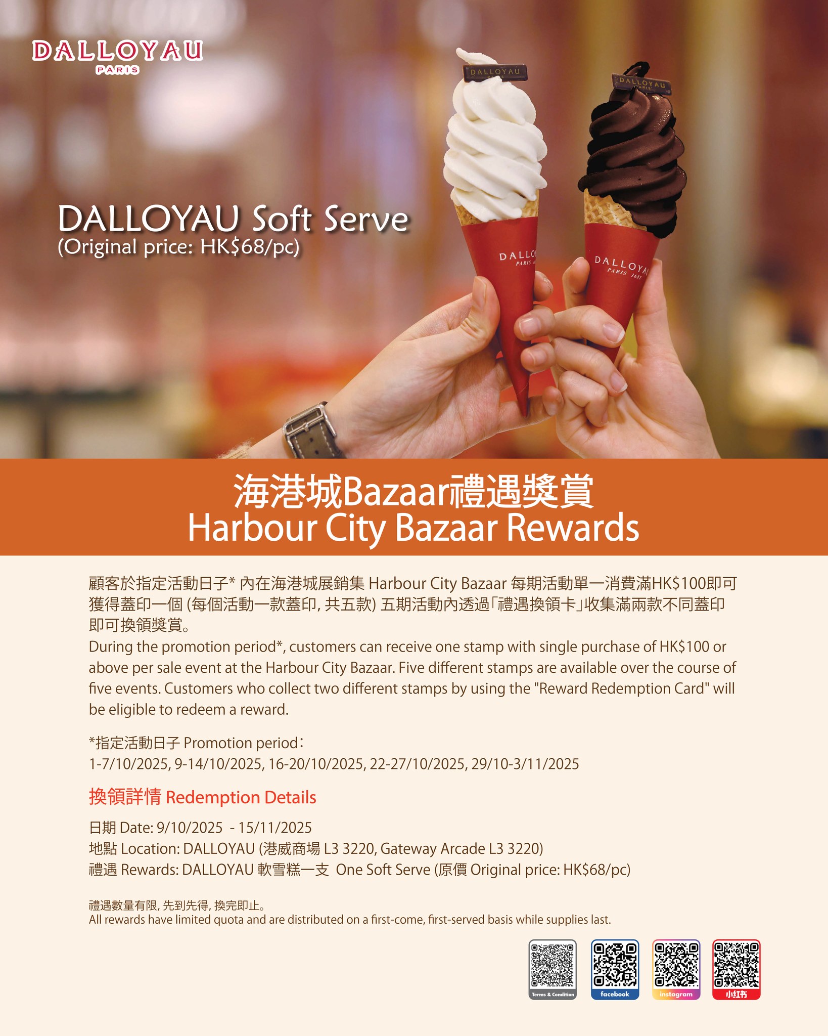 禮遇 Rewards: DALLOYAU 軟雪糕一支 One Soft Serve