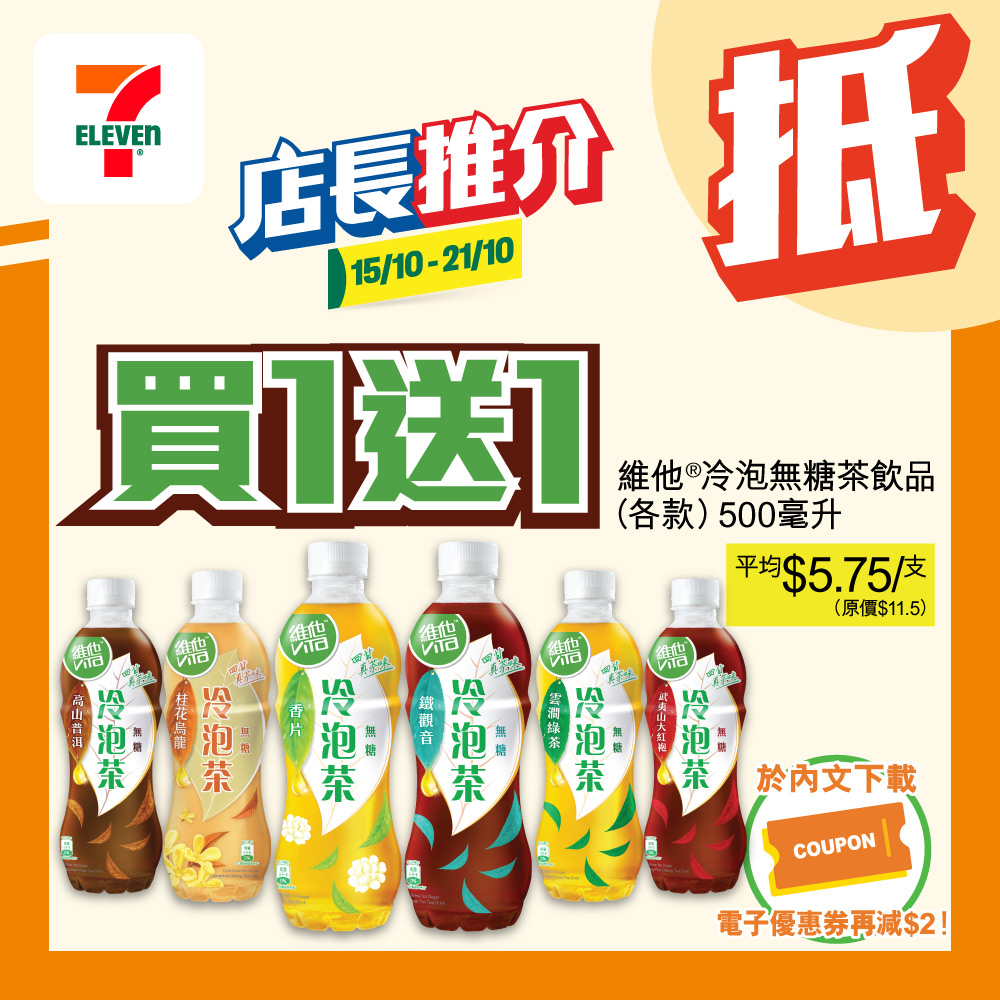 *優惠有效期由2025年10月15日至10月21日。以單一交易計算。部分貨品只限於指定店舖提供。貨品數量有限,售 / 送 / 換完即止。價格於香港店舖以港幣為單位。如有爭議,所有價格以個別店舖為準。貨品圖片只供參考。就一切有關事宜,7-Eleven將保留最終之決定權。