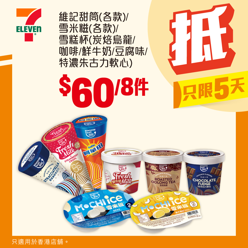 等等。想盡情享受假期?快啲去7仔掃貨,喺周末慢慢嘆雪糕、甜筒啦