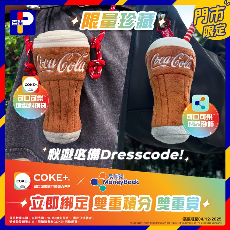 COKE+®同易賞錢聯乘推出限量珍藏可口可樂造型禮品! 以經典嘅可口可樂杯造型,搭配可愛掛飾及斜孭袋