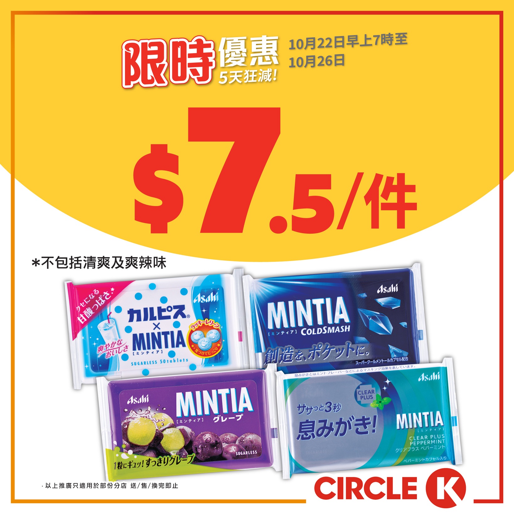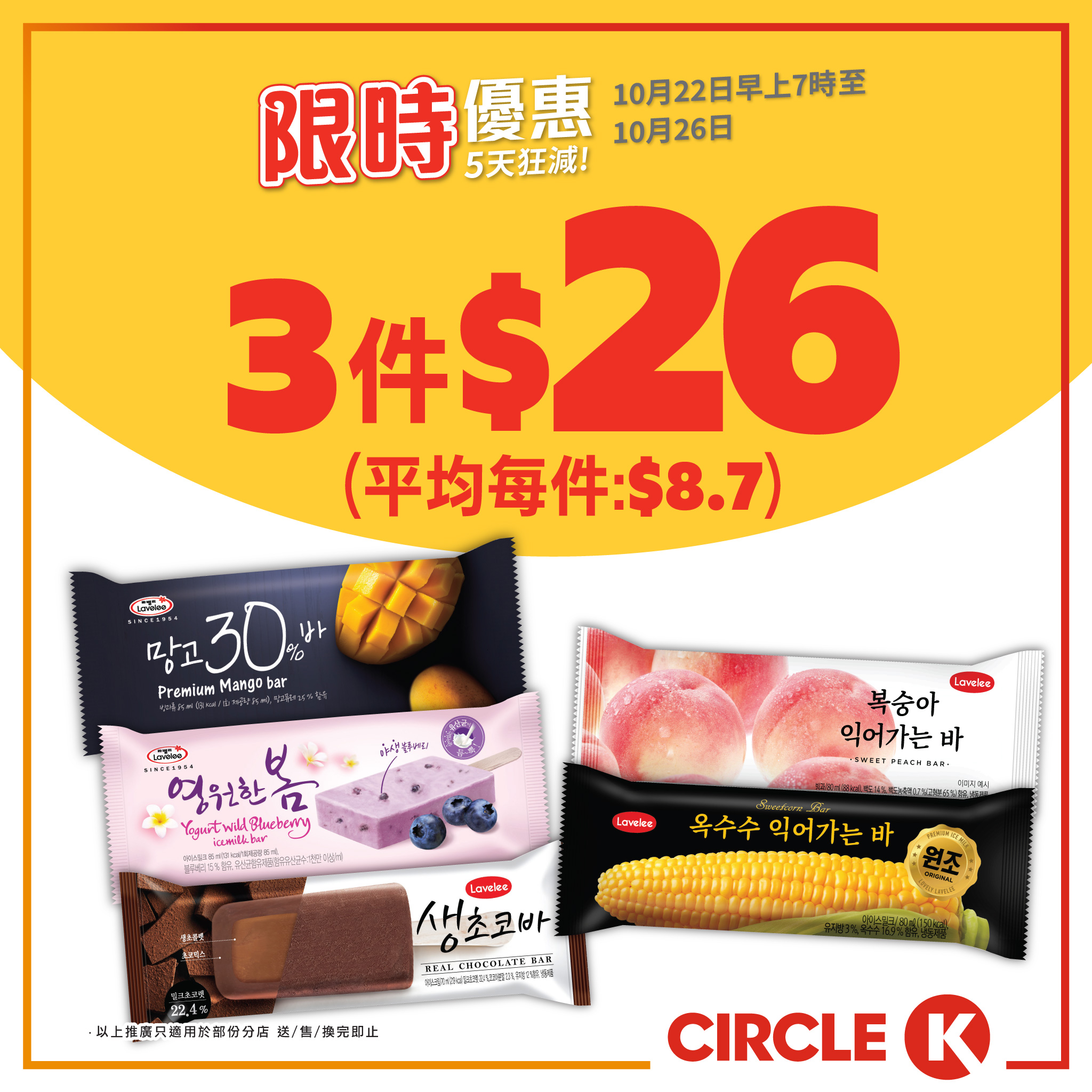 【5天狂減】限時優惠嚟喇!.趁天氣仲未太凍!把握仲可以食雪糕嘅日子,即刻嚟掃貨啦!今期雀巢甜筒超抵價,平均每件都只係$7.5!另外仲有Lavelee雪糕批優惠!除咗雪糕外,記得睇埋其他啤酒,飲品,零食優惠啦!一樣咁著數!. 雀巢甜筒(各款) (不包括奶油啤酒味) 9件$68(平均$7.5/件)LAVELEE雪糕批 (各款) 3件$26(平均$8.7/件) ASAHI MINTIA無糖薄荷糖50粒(冰爽/清新/可爾必思/巨峰提子味) $7.5/件維他新鮮茶480毫升(各款) $9/件寶礦力500毫升 (各款) 2件$19.5(平均$9.8/件) 嘉士伯啤酒500毫升 4 罐裝 $28/件 七寶札幌啤酒500毫升 $8/件. 推廣日期:10月22日早上7時至10月26日. 優惠須受條款及細則約束,詳情請參閱店內海報 購買及飲用啤酒人士必須年滿18歲#CircleK #OK便利店 #限時優惠 #5天狂減 #著數 #飲品 #啤酒 #雪糕 #零食