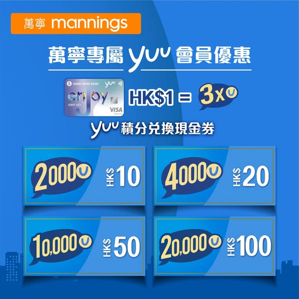 賺取的積分將於消費後1星期內存入你的yuu帳戶。更新積分的時間或會因某些情況下延遲,但我們會盡快處理。