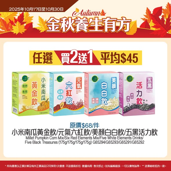 同場加映 【植物飲】 買二送一 (平均$45) 幫身體打好底子,迎接轉季挑戰!