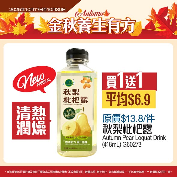 秋梨枇杷露】買一送一 (平均$6.9)