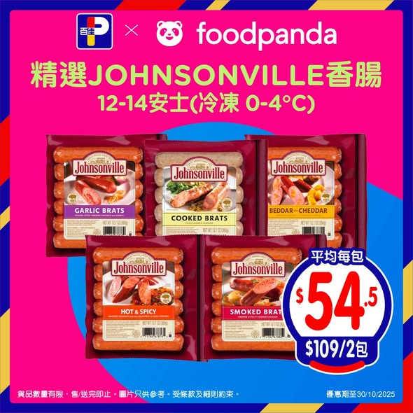 精選JOHNSONVILLE香腸12-14安士(冷凍 0-4°C),優惠價$109/2件,平均$54.5/件