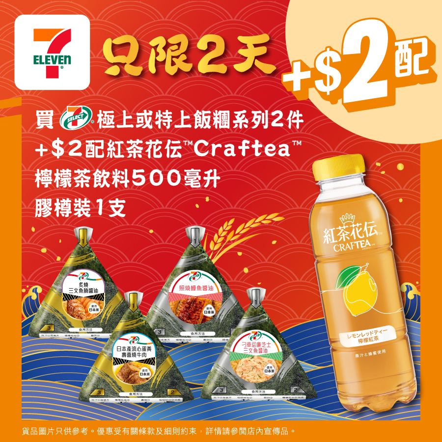 買 7-SELECT 飯糰加$2即配紅茶花伝檸檬茶飲料