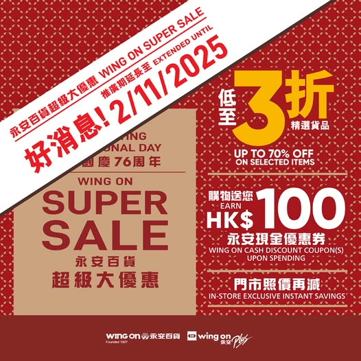 好消息!超級大優惠推廣期延長至2025年11月2日!詳情請參閱:https://c01.co/1dyif