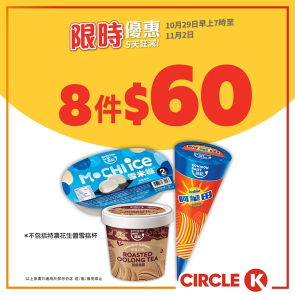 推廣日期:10月29日早上7時至11月2日.