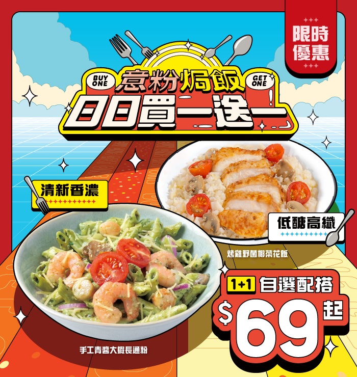 $5即配飲品1杯;$8起追加特飲*每份買一送一套餐最多可加配4杯飲品