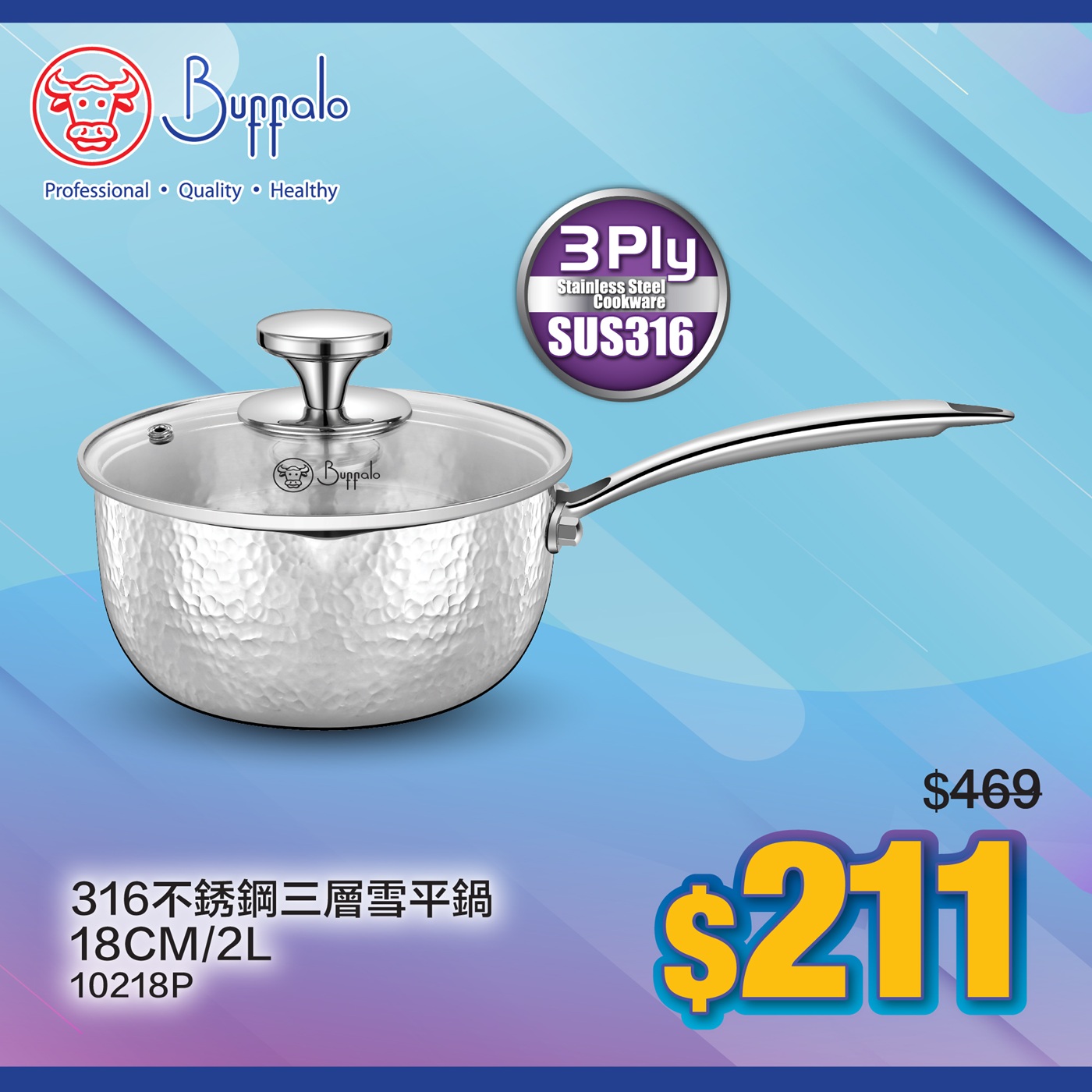 316不銹鋼三層雪平鍋18CM/2L (10218P),特價$211 (原價$469)