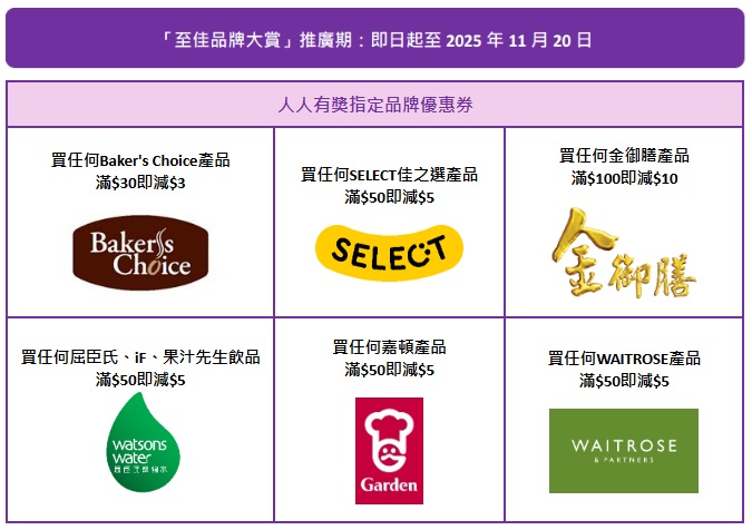 百佳超級市場「至佳品牌大賞」贏取$10,000禮券