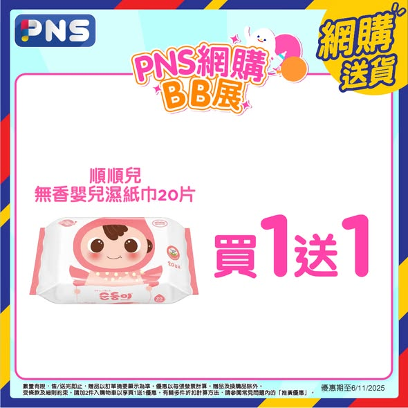 順順兒無香嬰兒濕紙巾20片買1送1(*請加2件入購物車以享優惠)