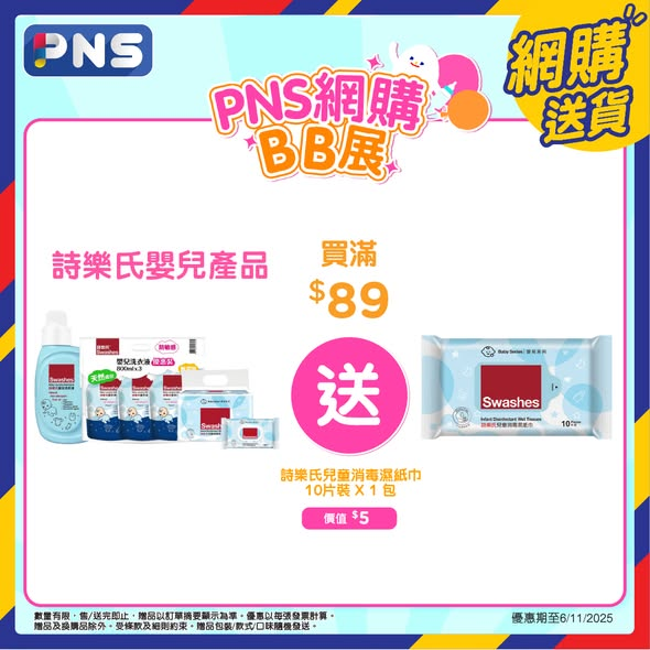 詩樂氏嬰兒產品買滿$89,送詩樂氏兒童消毒濕紙巾10片裝(價值$5)