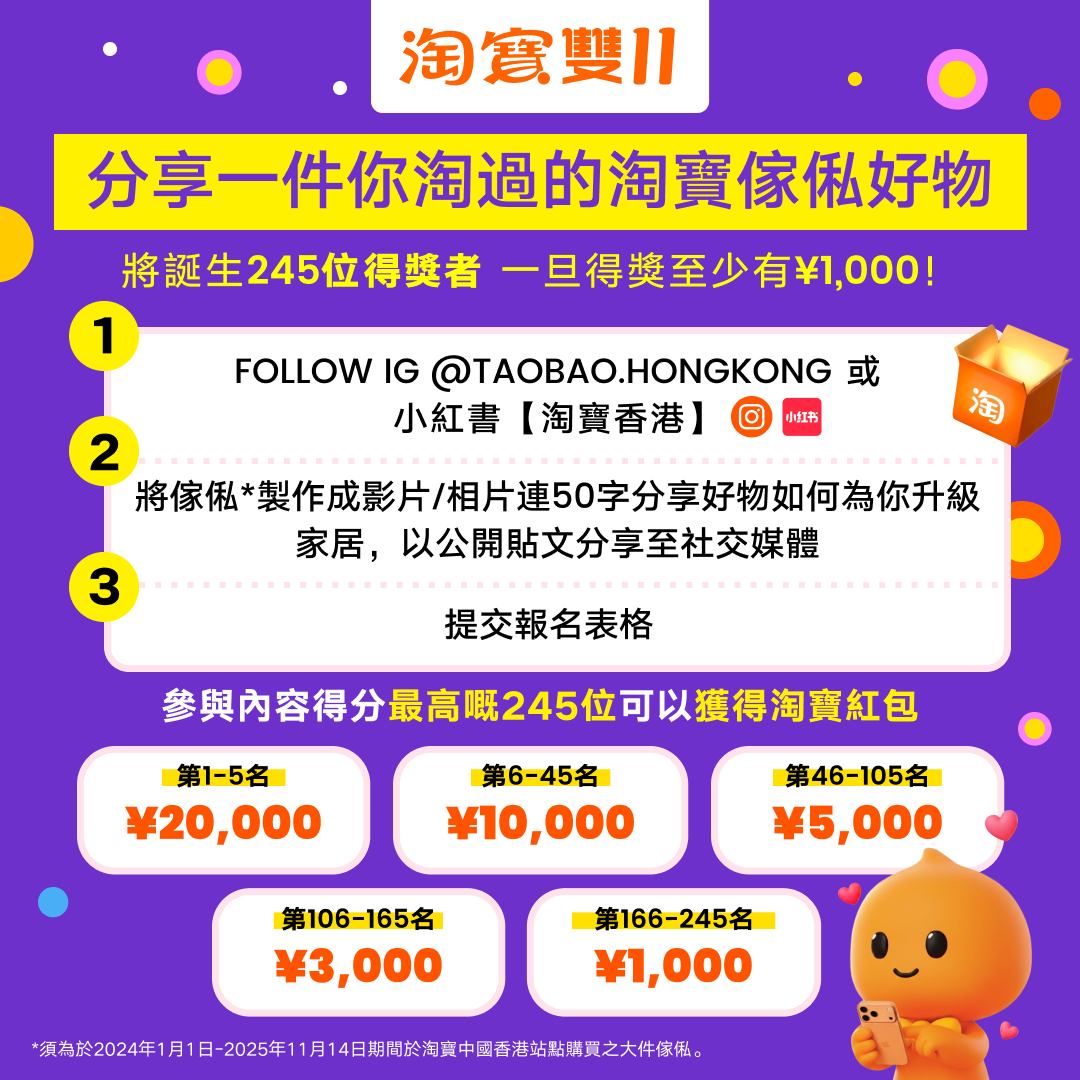 *優惠受條款及細則約束,詳情請參閱淘寶App