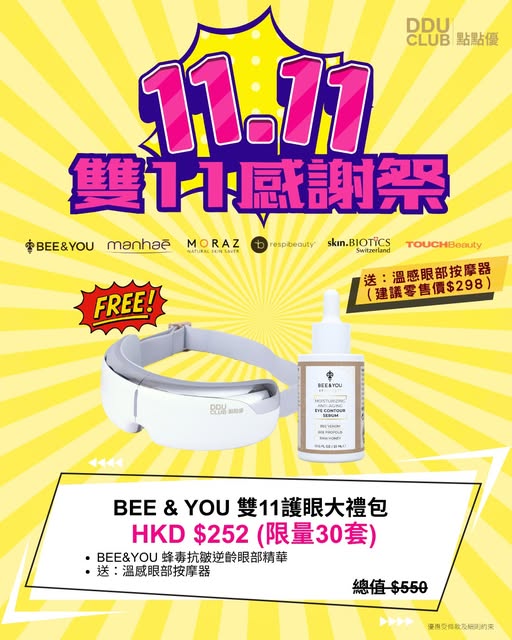 👀 告別眼紋、黑眼圈!🐝BEE & YOU 雙11護眼大禮包,拯救您嘅疲勞雙眼!👀