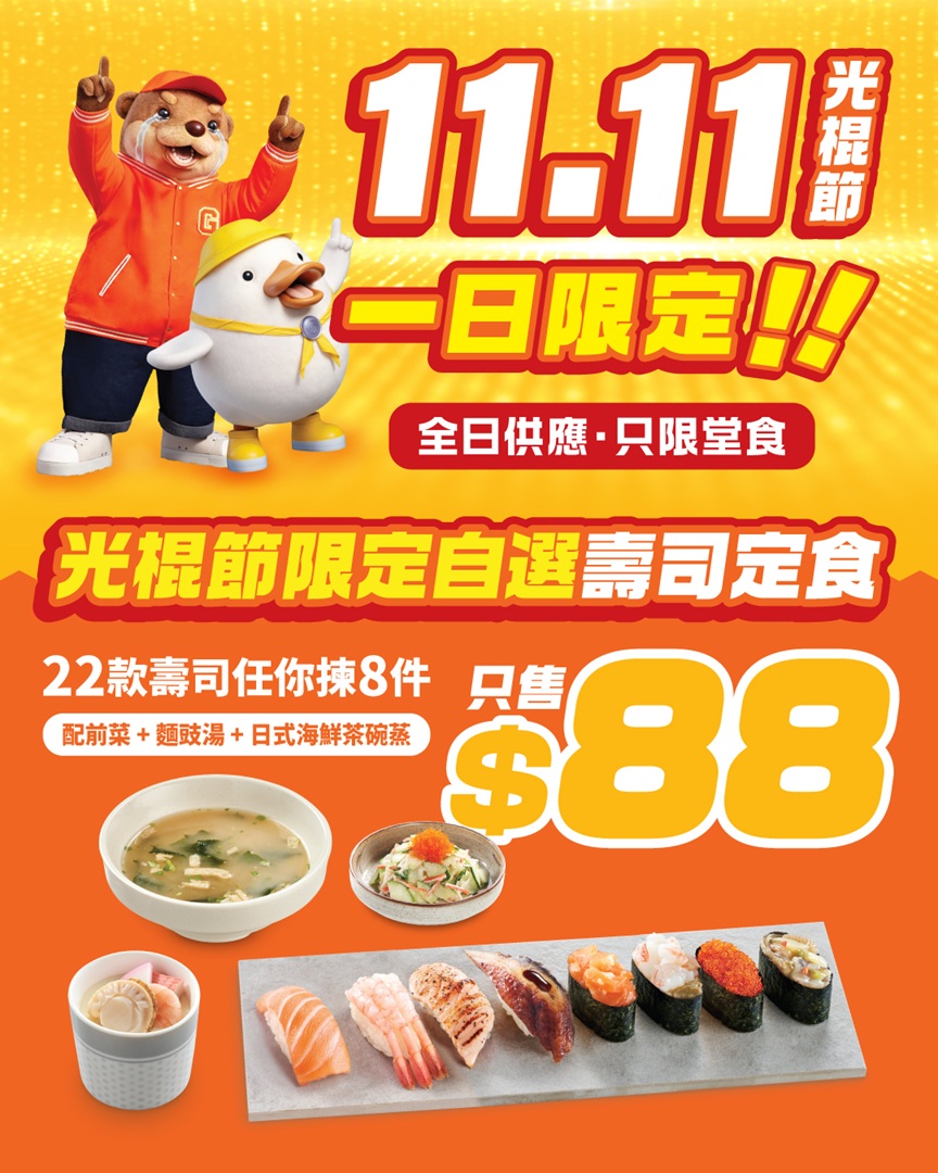 由22款精選壽司中任選8件,各款人氣壽司爭住俾你揀,單身唔單身都一樣可以話事!