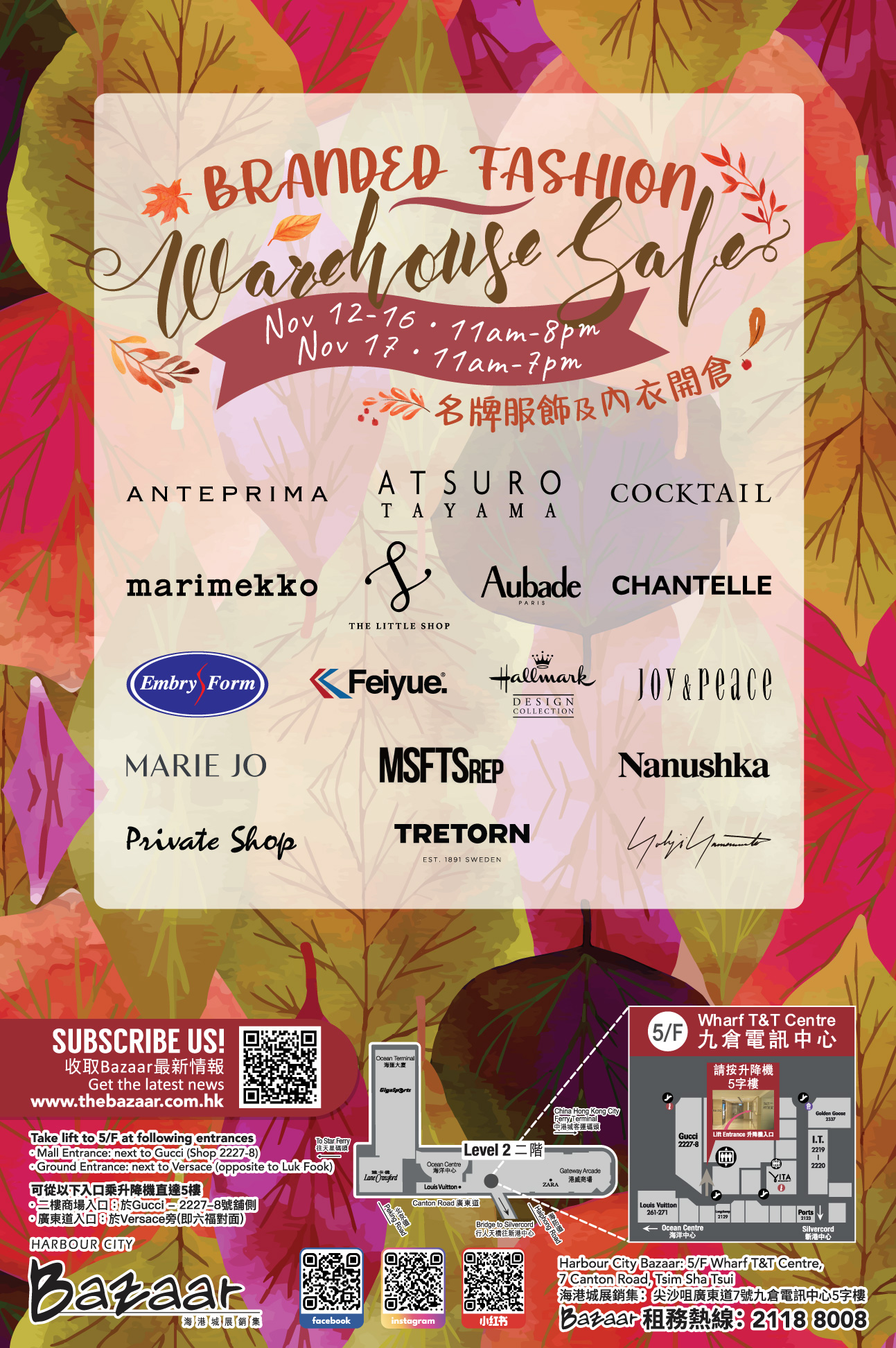 Address: 尖沙咀廣東道7號海港城九倉電訊中心5字樓 (尖沙咀站A出口) 5/F, Wharf T&T Centre, 7 Canton Road, Tsim Sha Tsui, Kowloon (TST Exit A1)