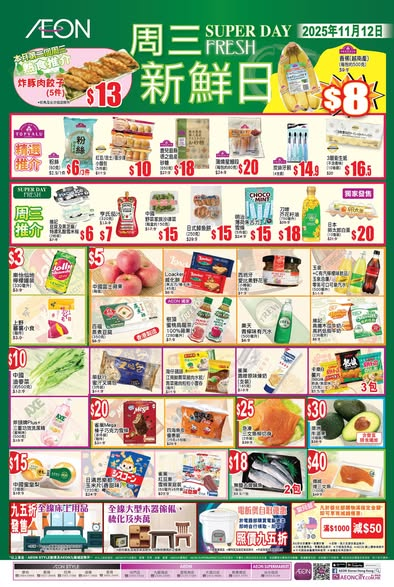 指定特許銷售商仲有周三新鮮日優惠,只係特定分店有架咋,快d黎AEON睇睇啦!