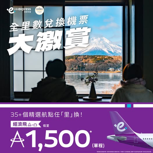 「全里數兌換機票大激賞」登場!】仲諗緊冬天飛邊度?今次「全里數兌換機票大激賞」幫你搞掂佢!只需低至1,500里數*就可以換到香港快運單程機票,想感受浪漫白色冬日