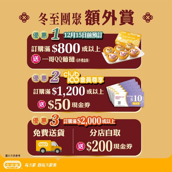 大家樂 Club 100 會員專享 訂購滿$1,200或以上,再送【$50大家樂現金券^】