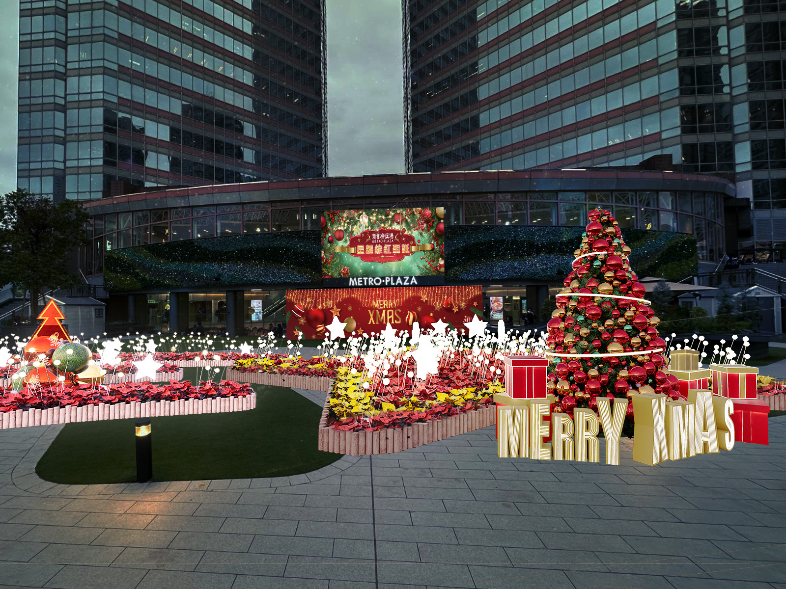 Christmas」燈牌搭配炫目的禮物盒,散發著溫暖的節日祝福。每一個角落都是絕佳的打卡點,讓你夢幻出鏡!