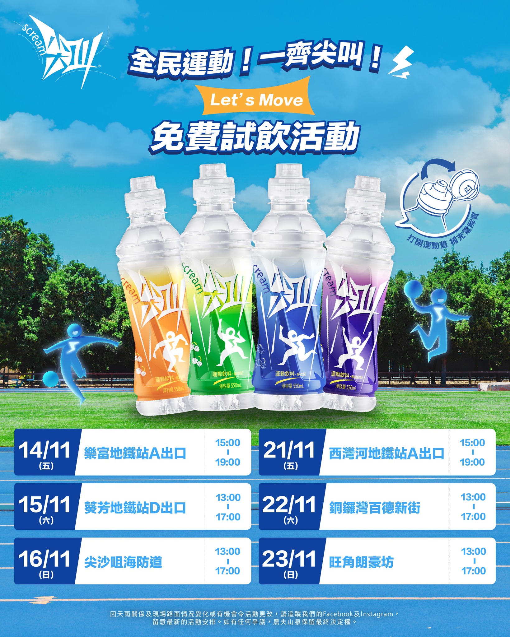 !「尖叫」運動飲品支持全民運動! 一齊尖叫 ! Let’s Move!