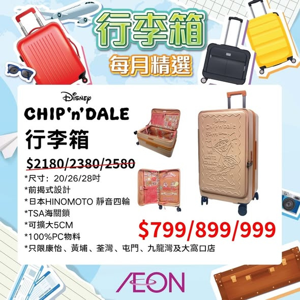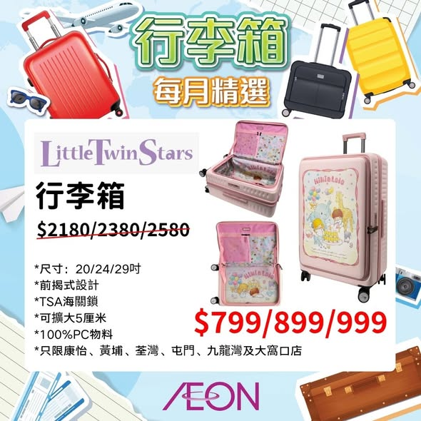 】 AEON行李喼每月精選又嚟啦,今次為大家帶黎卡通人物行李喼! 咁可愛,出行李時一眼就見到啦