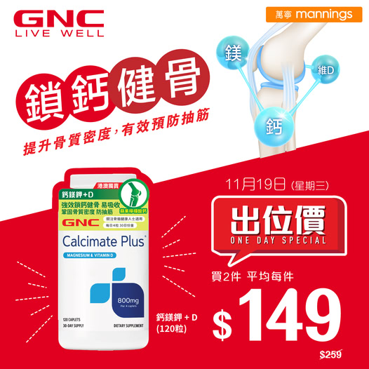 經常抽筋、容易肌肉痠痛?可能係鈣鎂不足發出嘅警號!產品於GNC專門店、指定萬寧分店及萬寧網店獨家發售。