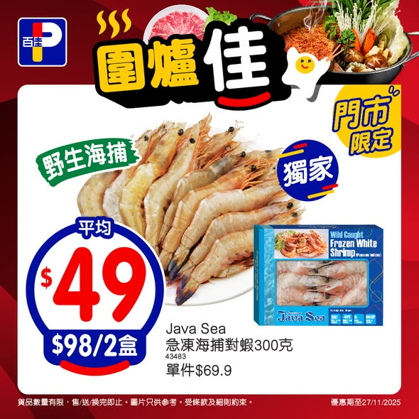 Java Sea急凍海捕對蝦 300克 - $98/2盒 (平均 $49/盒)