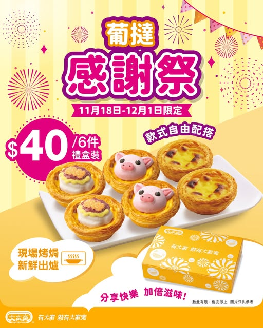 【大家樂葡撻感謝祭!|$4️⃣0️⃣歎到6件葡撻 🎉】
