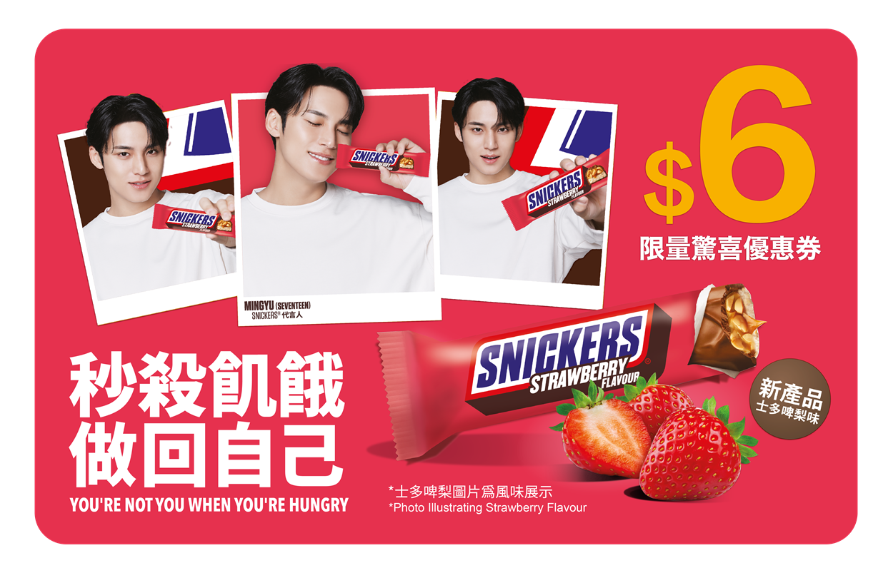 SNICKERS®士多啤梨味朱古力棒及SNICKERS®限量驚喜優惠券免費派送活動詳情: