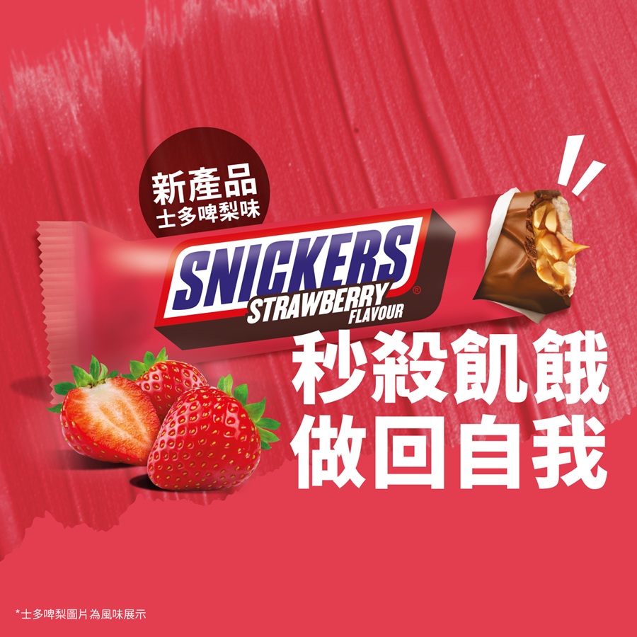 適逢亞洲樂壇盛事Mnet亞洲音樂大獎(MAMA)時隔7年再度回歸香港,SNICKERS®為與眾多樂迷共慶音樂盛事,特別舉辦全新產品士多啤梨味朱古力棒免費派發活動,這款新品將絲滑牛奶朱古力與香甜士多啤梨完美融合,搭配經典酥脆花生、濃郁焦糖及軟糯牛軋糖,打造層次豐富的全新口感,為品牌經典風味注入浪漫新意。SNICKERS®將在11月28日至29日一連兩日,於啟德舉行免費派發活動,準備10,000份全新士多啤梨味朱古力棒與樂迷分享,為令參加者盡享甜蜜,SNICKERS®更是驚喜加碼,在現場特別準備SNICKERS®限量驚喜優惠券免費派發。參與者只需在指定時段前往活動地點,尋找SNICKERS®大使完成簡單小任務,即可免費得到全新士多啤梨味朱古力棒及SNICKERS®限量驚喜優惠券。憑券能以$6超抵價再次享受全新士多啤梨味朱古力棒,立即把握機會,將更多甜蜜滋味帶回家!