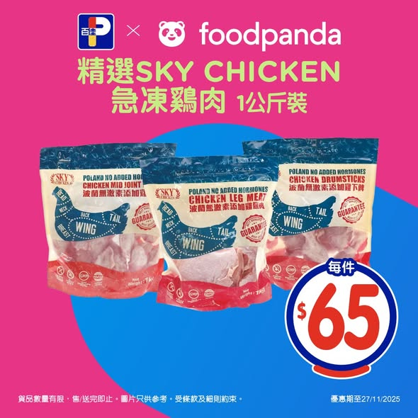 精選SKY CHICKEN急凍鷄肉1公斤裝,優惠價$65/件