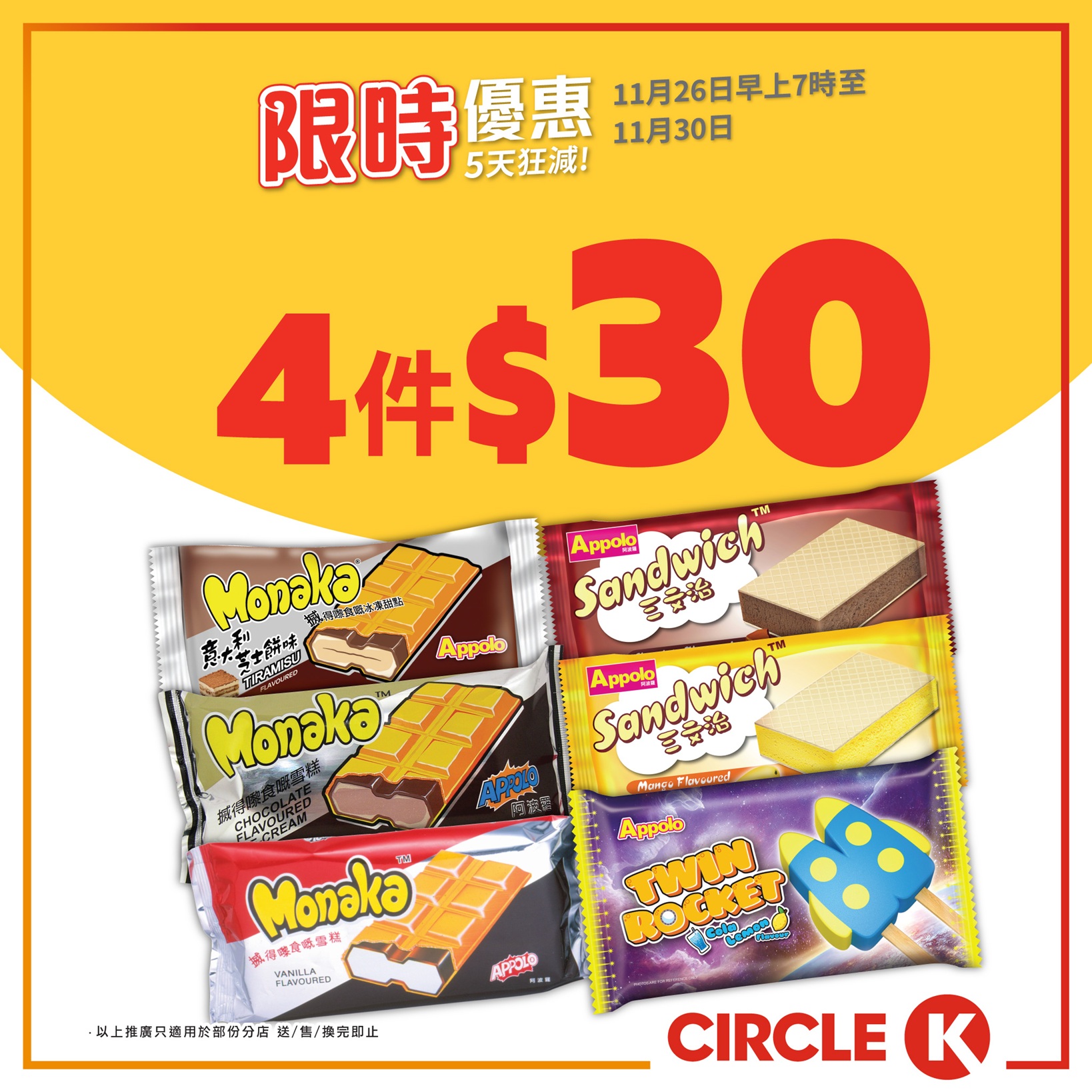 推廣日期:11月26日早上7時至11月30日.
