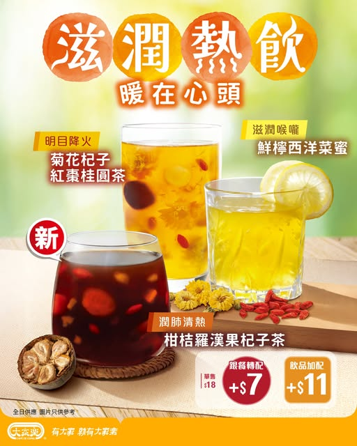【大家樂🍵暖心滋潤熱飲 |全新🆕柑桔羅漢果杞子茶】