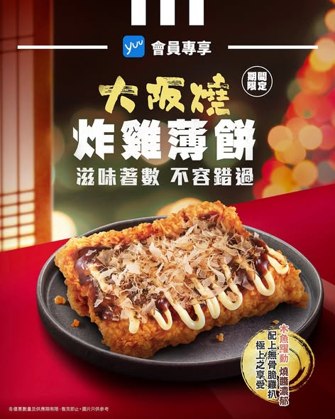 KFC期間限定新口味「大阪燒炸雞薄餅」著數登場!