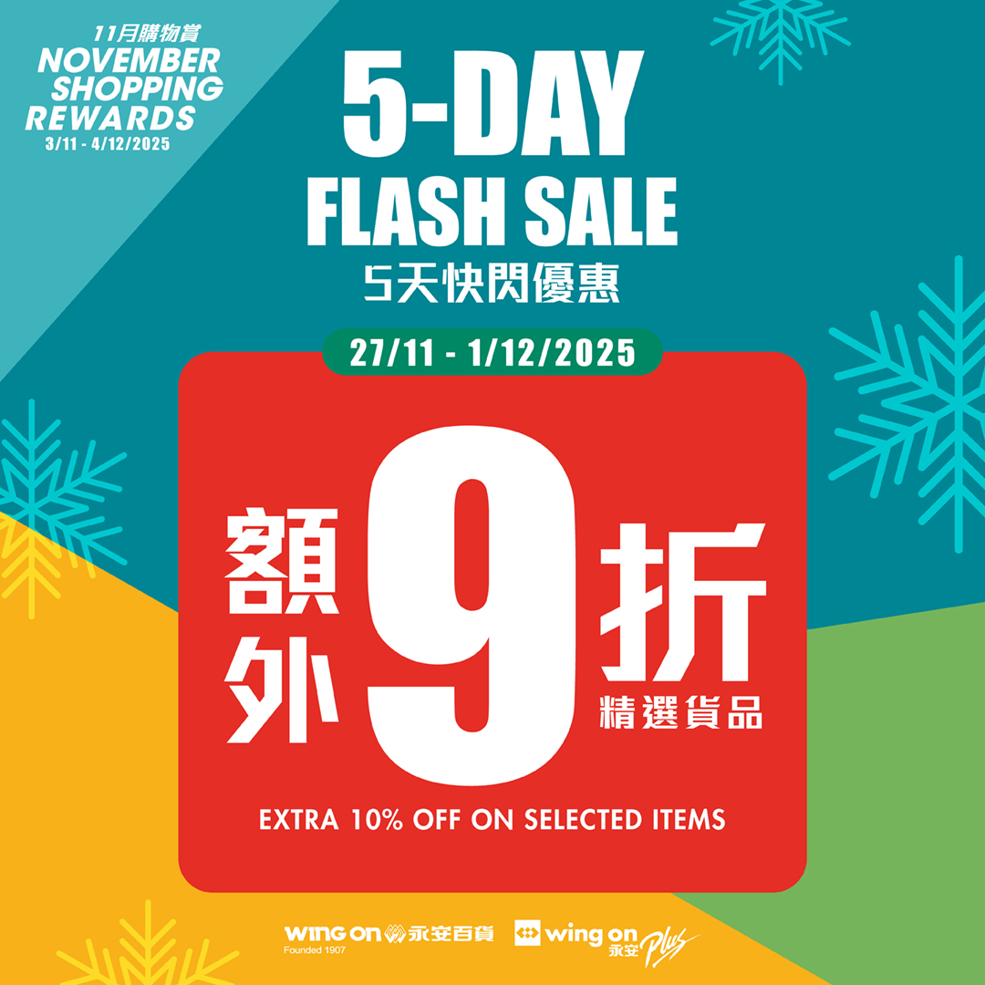 5天快閃優惠】即日起至2025年12月1日,購買精選貨品即享額外9折