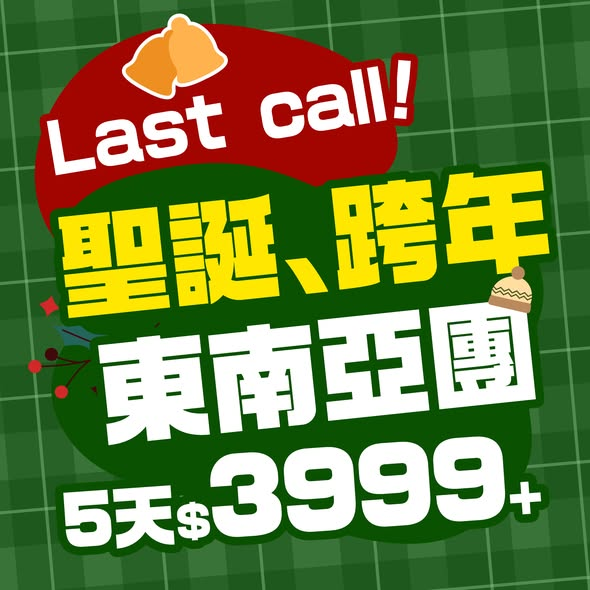 12月20-31日聖誕跨年黃金日子出發東南亞5天團$3999