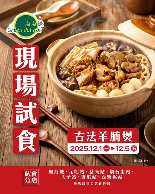 想試下古法羊腩煲,記得Mark低以下時間,可以到以下分店免費試食,記得唔好錯過!