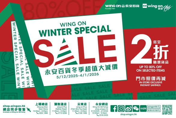 永安百貨冬季超值大減價 (推廣日期:2025年12月5日至2026年1月4日)