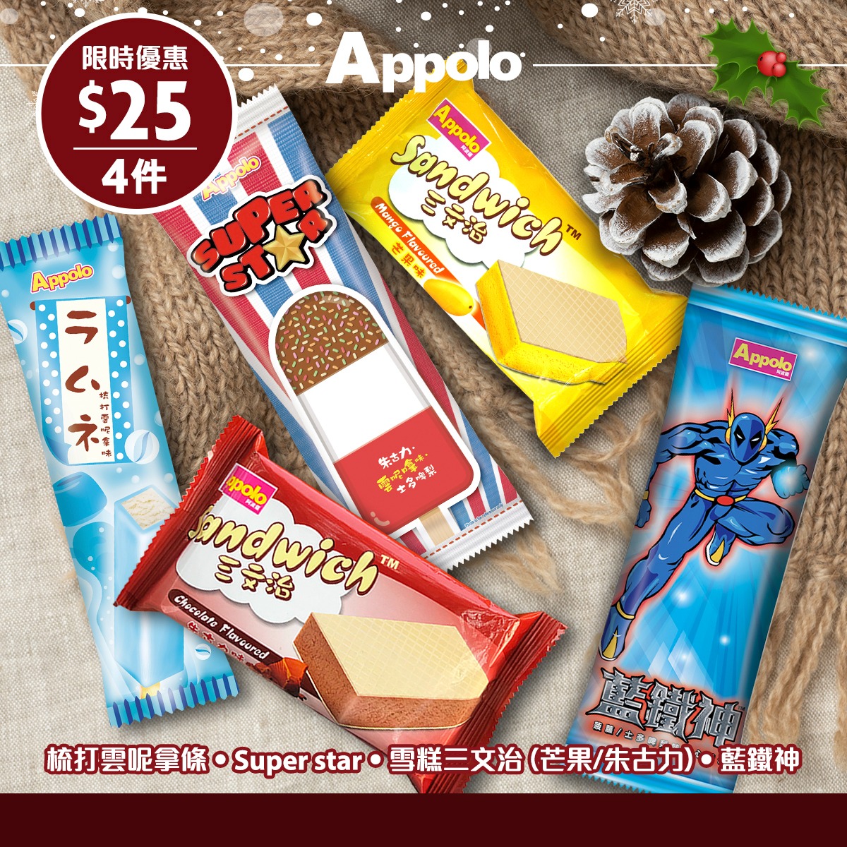 【阿波羅為你打打氣】生活中總有挫折,在艱難嘅時刻,你並不孤單。抖擻精神,食番枝阿波羅雪條,回一回氣再衝刺。今個星期為你打氣既有梳打雲呢拿條、Super Star、雪糕三文治同埋藍鐵神。12月7日或之前,只需$25,就可以買晒以上4款雪糕/雪條,為生活多添一點甜* 優惠不適用於尖沙咀、旺角、將軍澳連理街、紅磡及部份分店。詳情需以店內宣傳品所示之資料為準。#Appolo #阿波羅雪糕 #雪糕 #雪條 #優惠 #梳打雲呢拿條 #Superstar #雪糕三文治 #芒果 #朱古力 #藍鐵神
