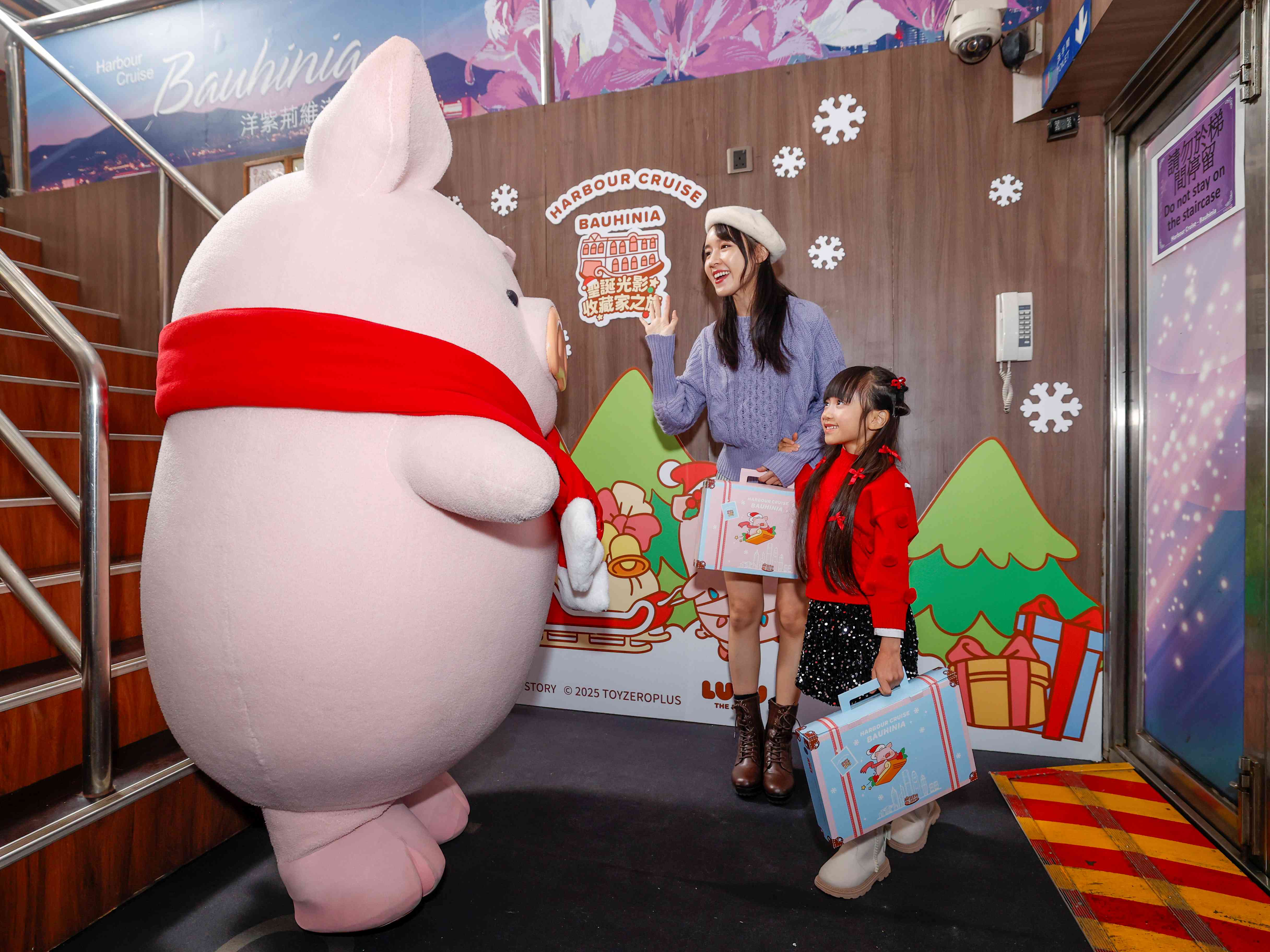 今個聖誕,維港迎來一位可愛得意的豬導遊!由即日起至2026年1月4日期間,洋紫荊維港遊聯乘人氣IP 「LuLu豬」首度登船,打造期間限定的「聖誕光影收藏家之旅」,定要為洋紫荊維港遊全新注入滿滿的萌趣。在沈醉於目不暇給維港兩岸景致的同時,可盡情與遍佈全場的LuLu 豬主題佈置打卡,或與LuLu 豬偶遇合照,亦可憑票換取限量版行李箱造型禮盒套裝;粉絲更可搜購獨家主題精品系列,由LuLu豬帶領一家大小及粉絲投入節日收藏家之旅。