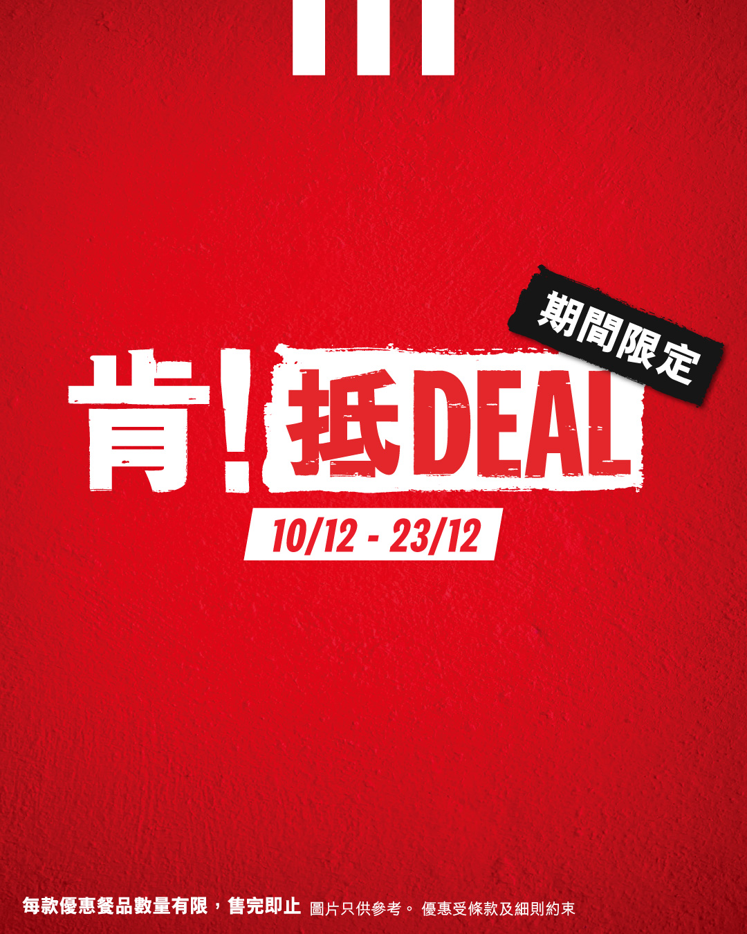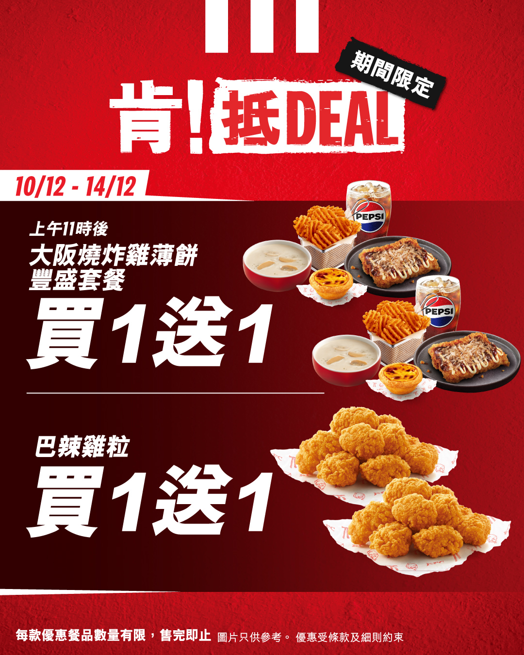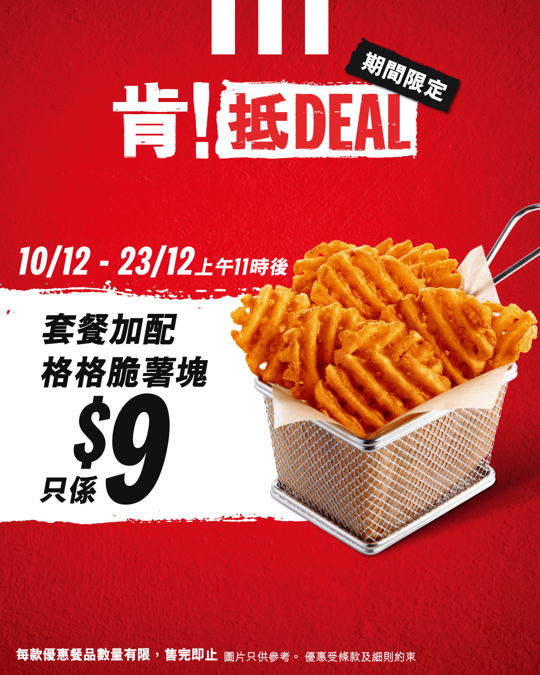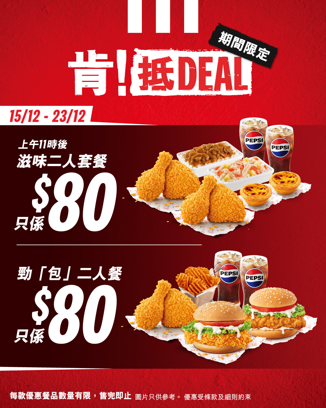 限定優惠聖誕就到喇!「肯!抵DEAL」踏入12月繼續有驚喜優惠,12月10日至12月23日期間為你送上多款至抵優惠,俾你日日都歎到KFC滋味!