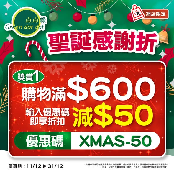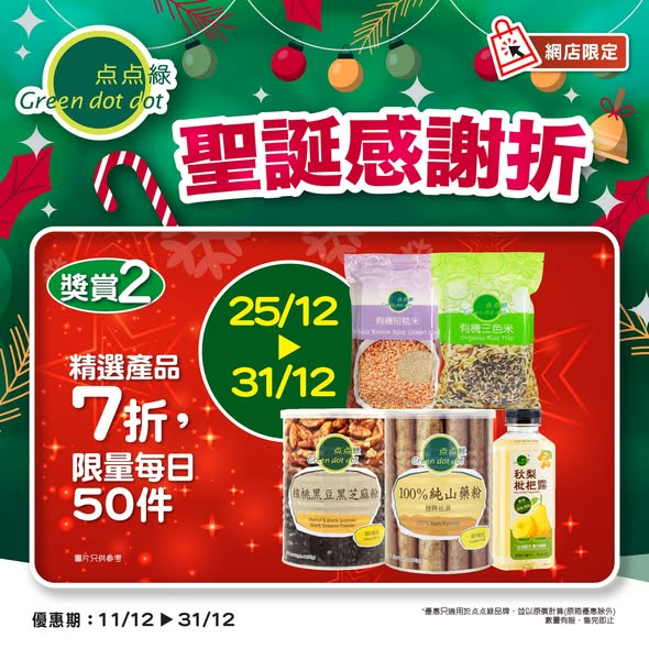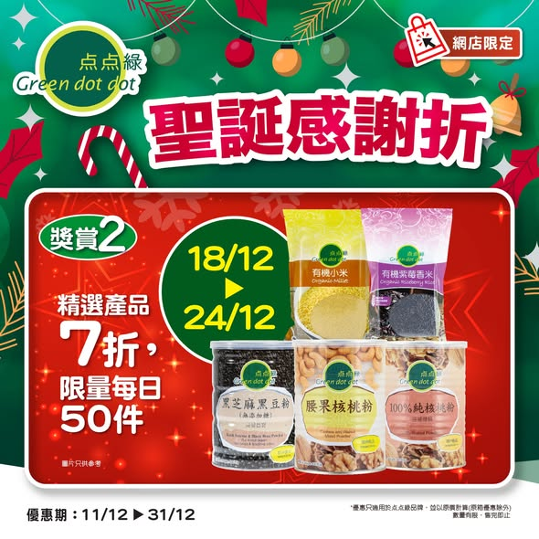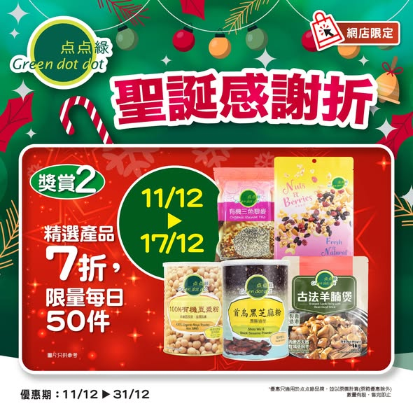 ? 唔洗驚,点点綠網店為你準備好哂一系列「有營」好物,聖誕感謝折,同您歡度聖誕節