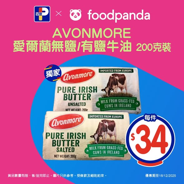 AVONMORE愛爾蘭無鹽/有鹽牛油200克,優惠價$34/件^送遞時間按實際情況而定。