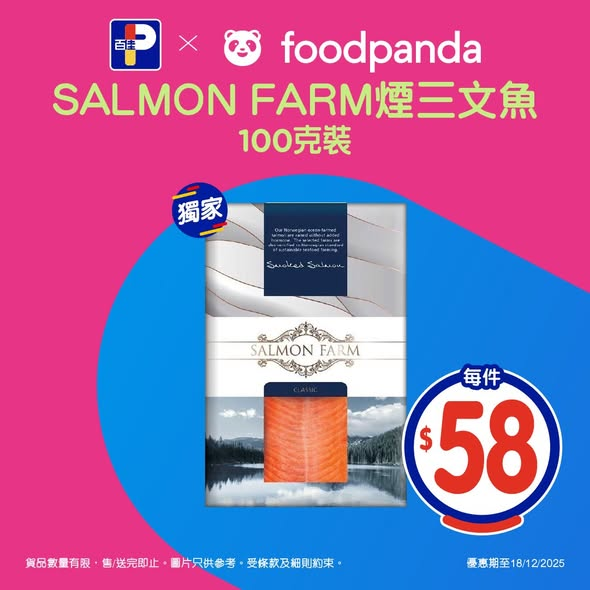SALMON FARM煙三文魚100克,優惠價$58/件