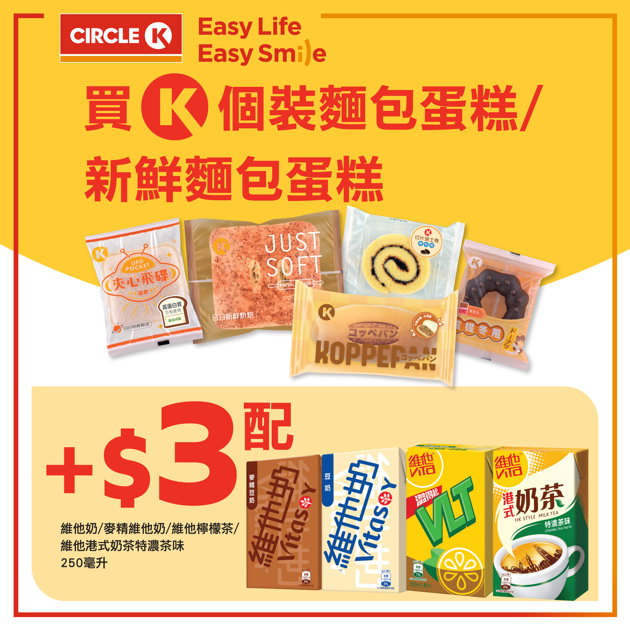 依家喺OK便利店,買 Circle K 個裝麵包蛋糕 / 新鮮麵包蛋糕,只需加:
