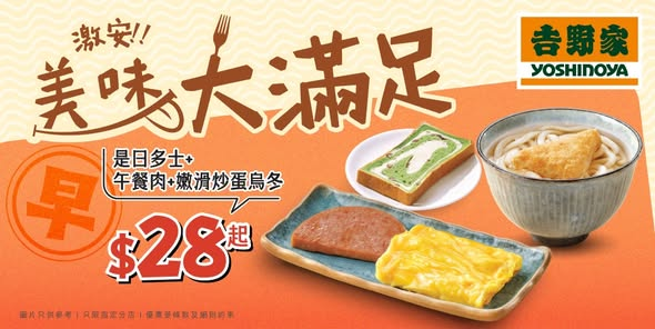 午餐肉+嫩滑炒蛋烏冬+是日多士 $28起